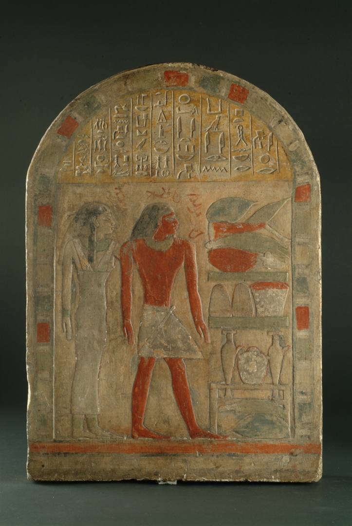 Obojena je i na licu ima prikaz dvoje dedikata ispred žrtvenog stola s obiljem žrtava. U deset vetrikanih redaka napisana je žrtvena formula peret-heru i nabrojeni su darovi. Tekst teče s desna na lijevo.